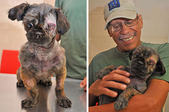 Hair Growing From Eye Nearly Gets Puppy Put Down Til Angel Saves Him
